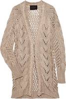 It taupe cable-knit net cotton cardigan is a versatile easy-chic piece. Wear it off-duty with leather shorts and a simple black tee to complete a contemporary weekend look. Shown here with Acne boots, Anya Hindmarch bag,Bottega Veneta ring, 3.1 Phillip Lim shorts, James Perse top, Giles & Brother necklace and a Pamela Love ring,necklace and necklace.